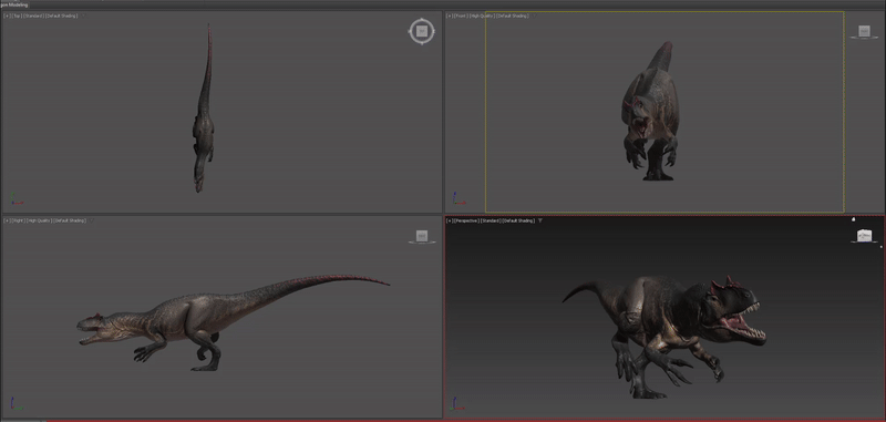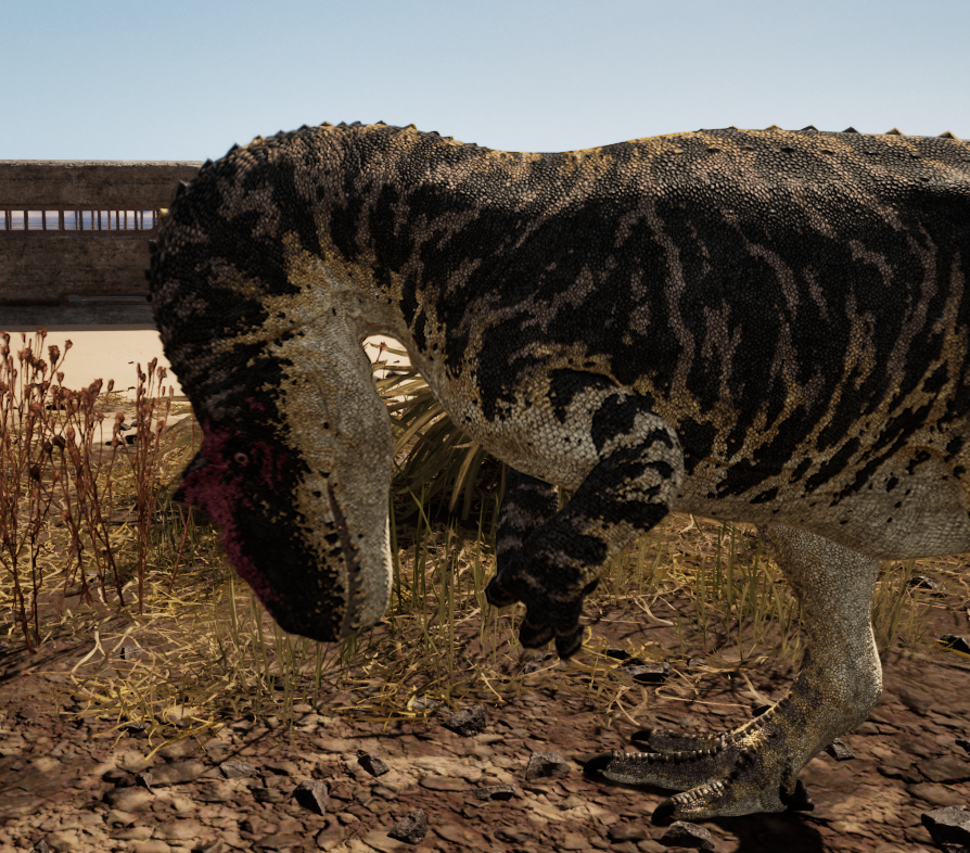 Allosaurus has received a few more updates and it’s closing in. The new claw swipe is in, a mobile attack that has allosaurus using its forelimbs to slash targets alongside it without losing momentum, which also happens to be the last of its attacks to be implemented. The sound team has been moving quickly through the juvenile sound sets for this animal, though it may be introduced before they are all complete. To be clear, yes, allosaurus will be moving into the HordeTest alongside tyrannosaurus.