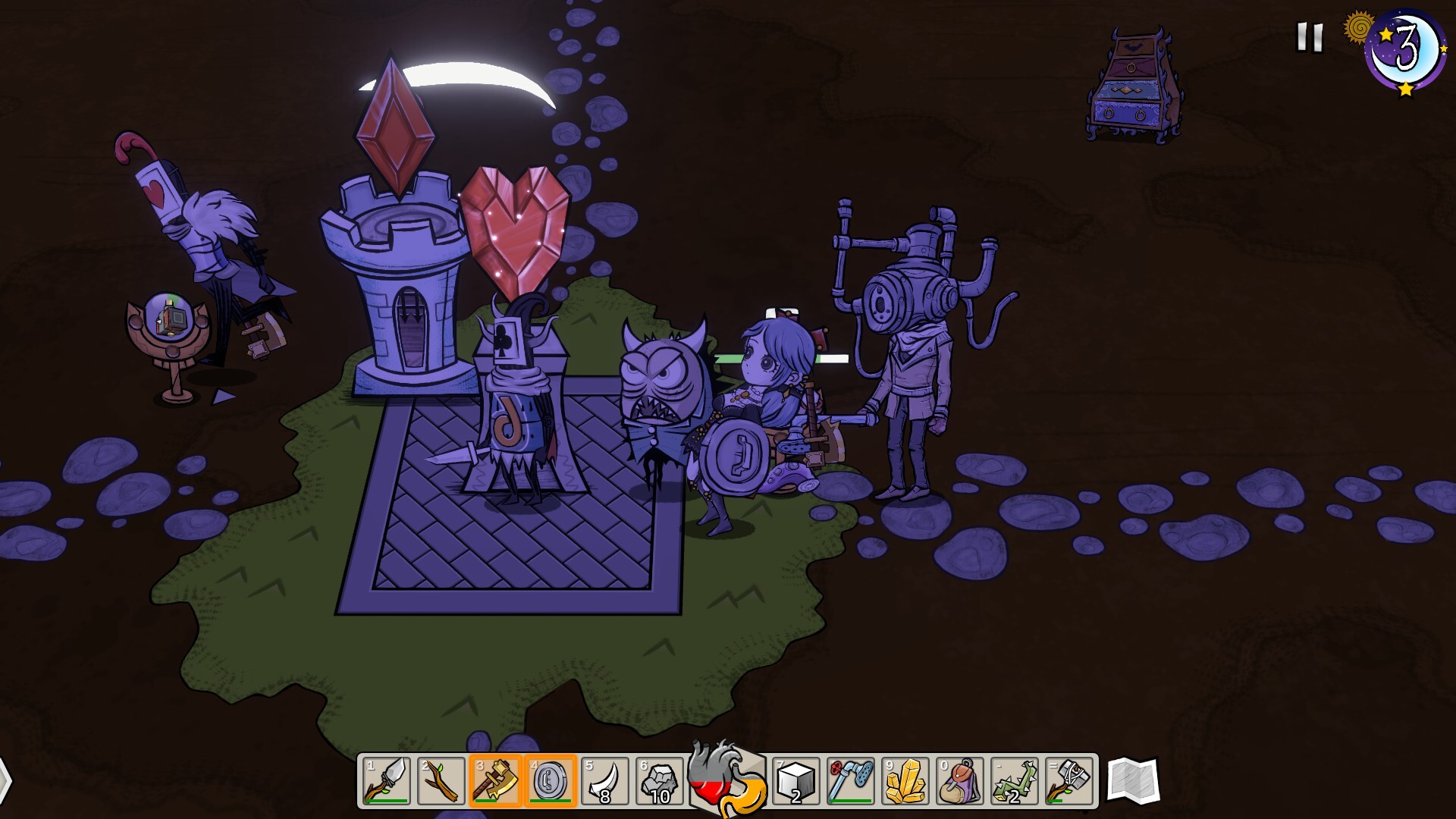 🌙 Night: Return to your main city to build defenses, set traps, and protect the crystal!