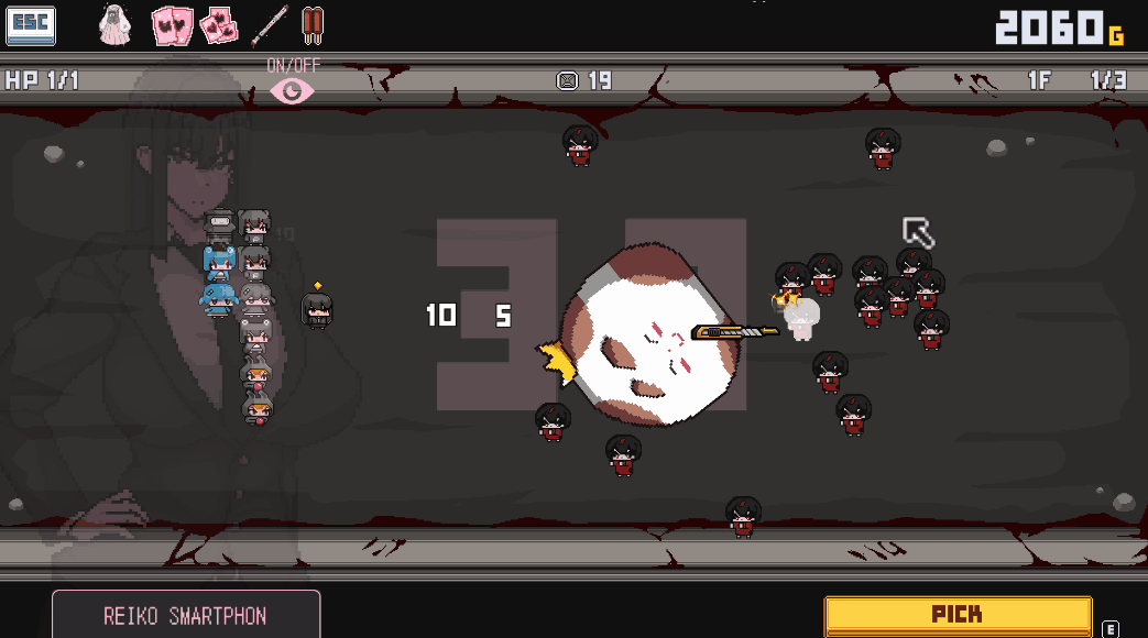 We received a lot of feedback from players during the demo who wanted to see Reiko during combat. Now, the Reiko Standing art will appear on the battlefield! Previously only visible in the inventory, Reiko will now be present during combat and in the shop in Menhera Mode, with an adjustable transparency option.