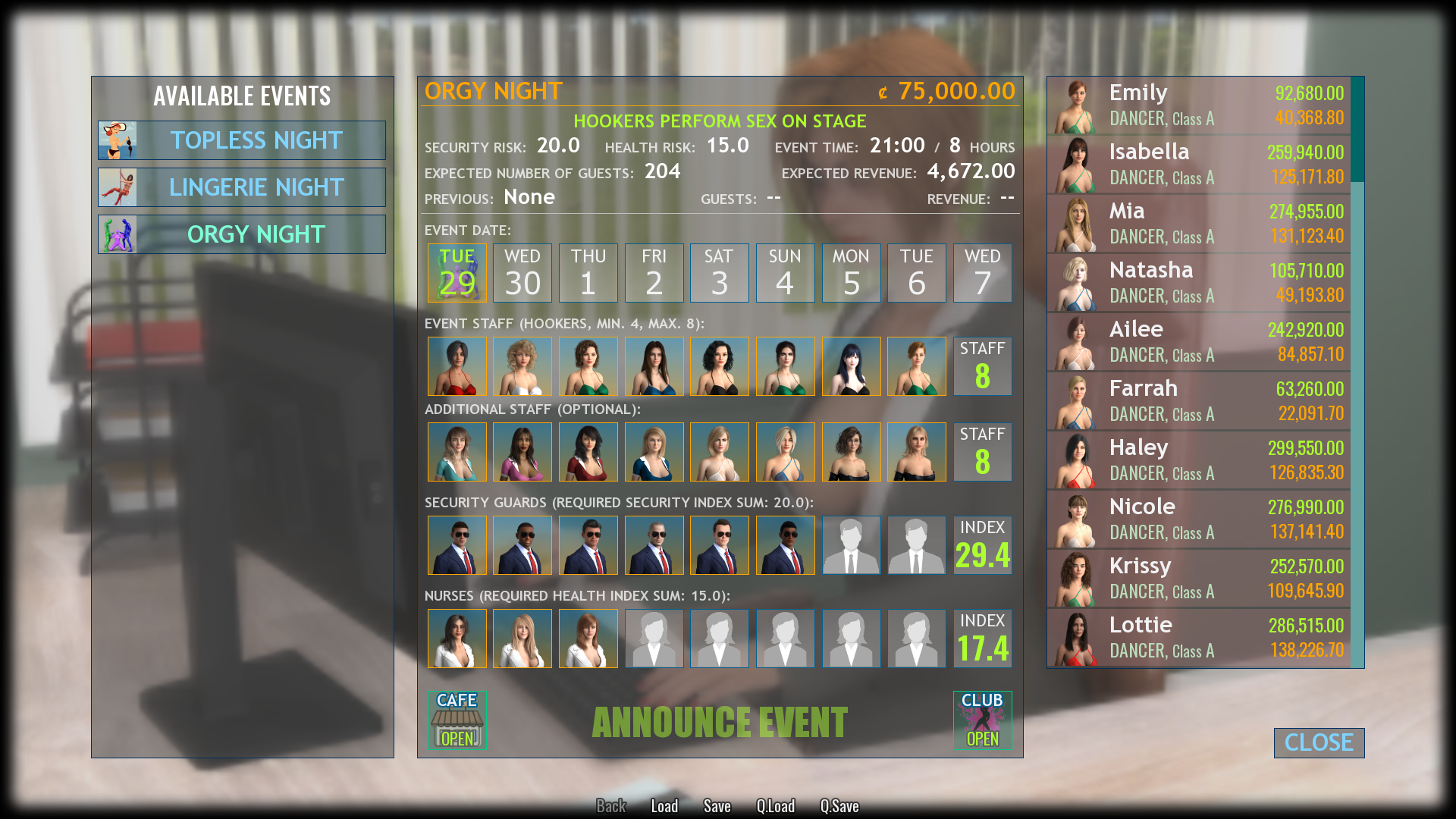 We are expanding the number of staff available in the game with the Staff Expansion Pack DLC which will add to the game: two new assistants, four new nurses, five new waitresses, five new dancers, five new maids and five new hookers.