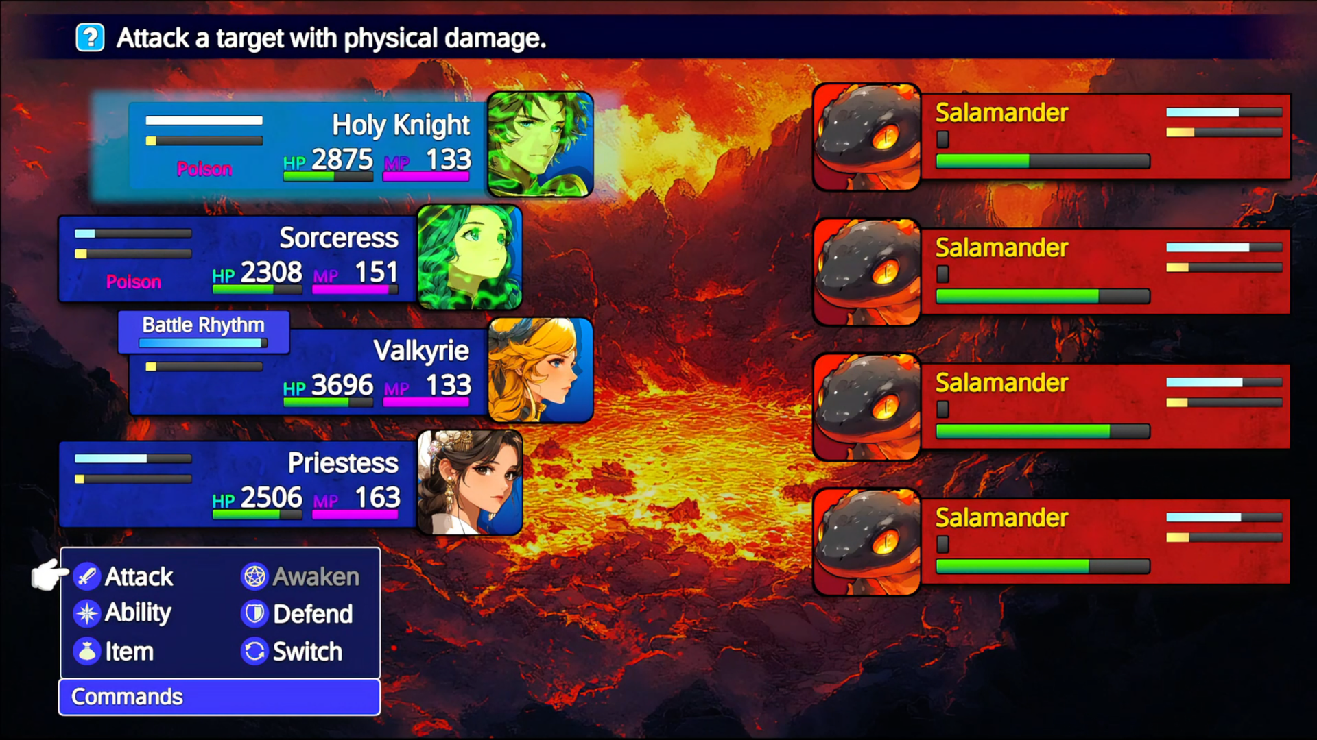When a combatant’s turn arrives, their Command Menu appears at the bottom-left of the screen.