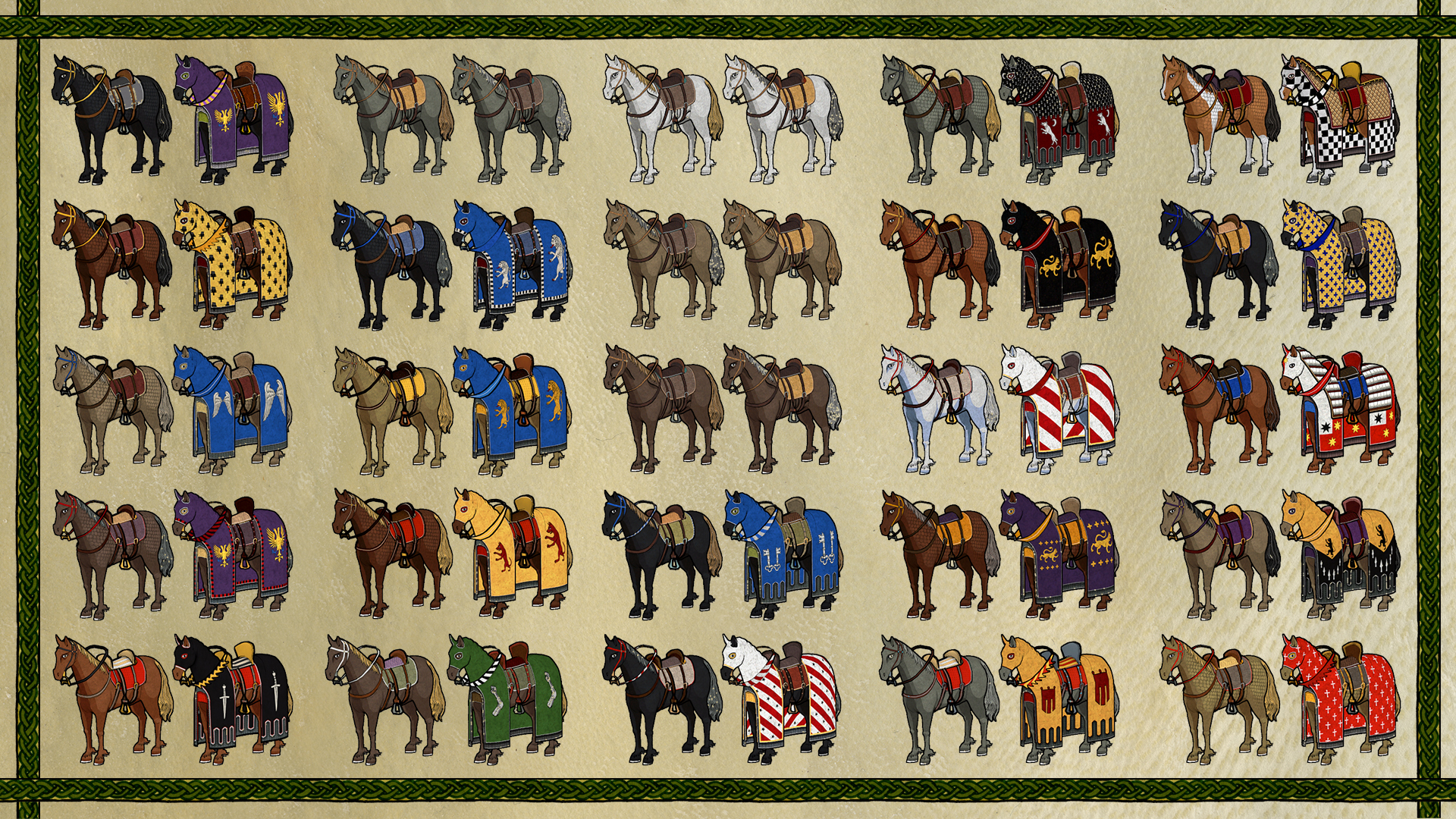 We've made multiple improvements to them, both in the demo and the upcoming full release. For starters, we added multiple new looks, from three variations to nine of them! Notwithstanding the different barding a Knight's hose will have depending on their opulence (how rich they are).