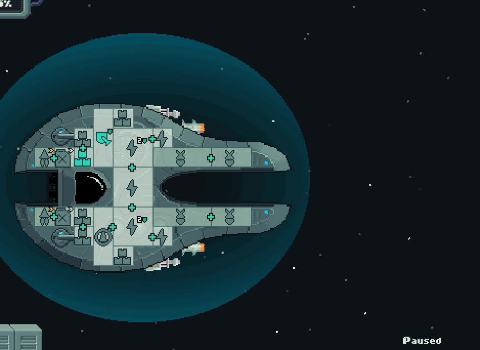 Some locations on the ship also offer bonuses to engine performance and to the number of hit points a part gets when placed there, so you're encouraged to put engines at the back of the ship and to put your most valuable ship systems in the centre.