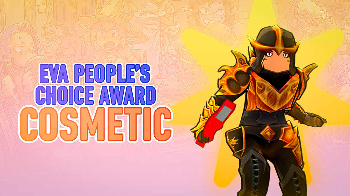 • To celebrate Eterspire winning the 2025 EVA (Argentine Game Expo) People's Choice Award, you can now get your own EVA Award in-game as a cosmetic weapon! Visit Giftwrapper at the Stonehollow Fairgrounds to claim it. Thank you for your support!!