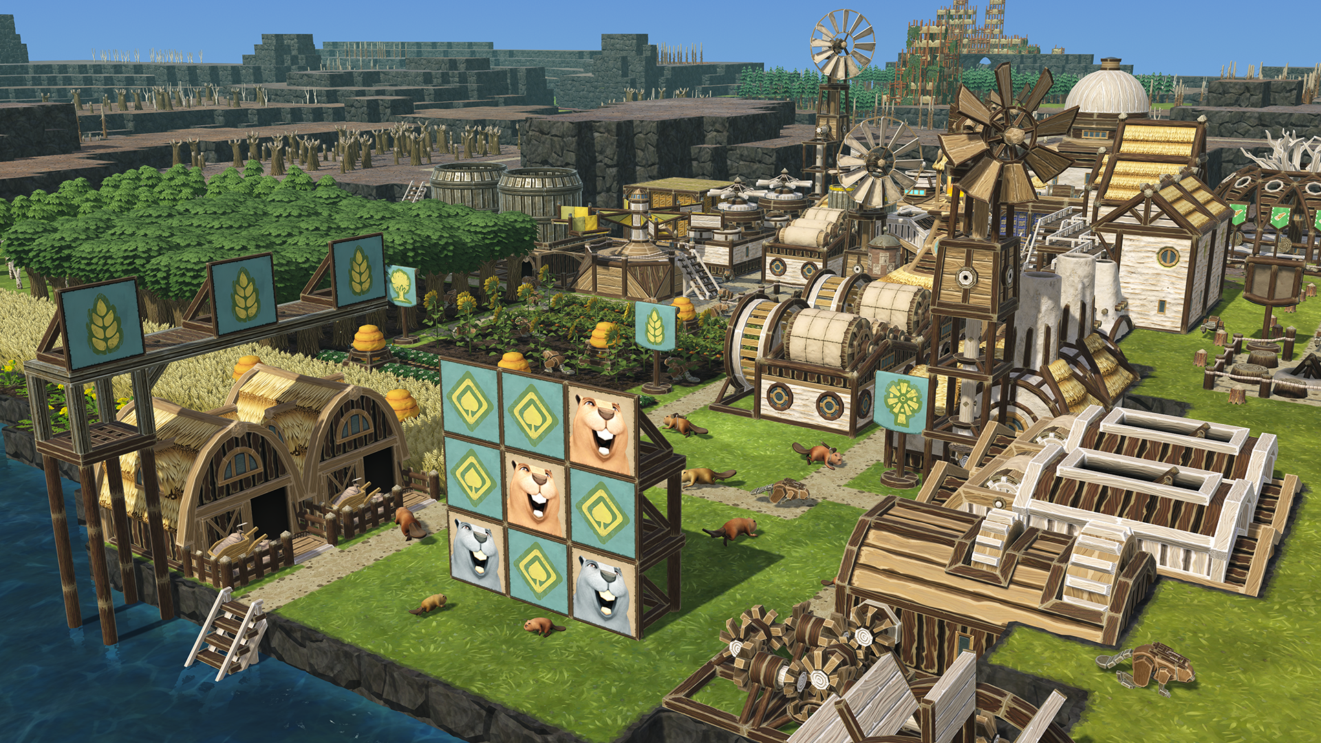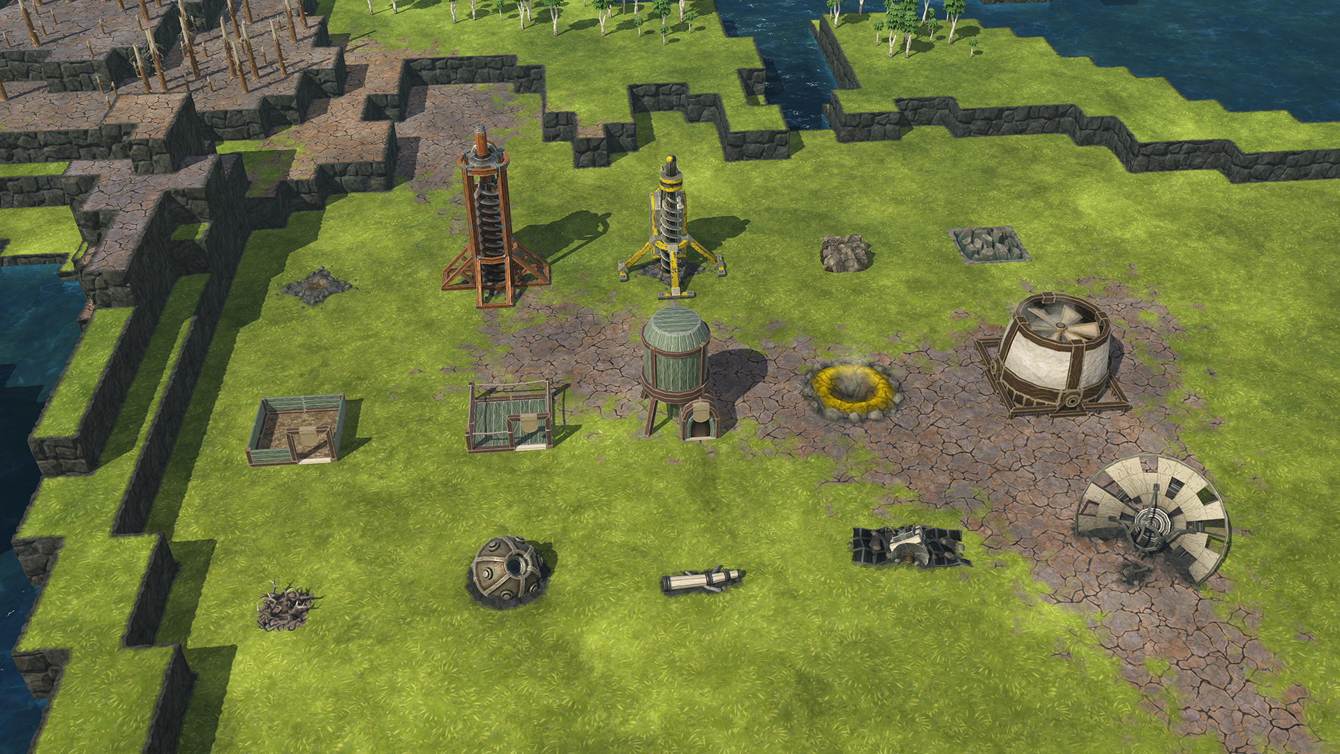 Some Timberborn maps, both built-in and created by our talented players, are centered around a specific challenge rather than the regular sandbox gameplay. With the newly added map objects, we expect that to become even more common. To accommodate that trend, we’ve added a new map category - the Unconventional maps - with two shining new examples.
