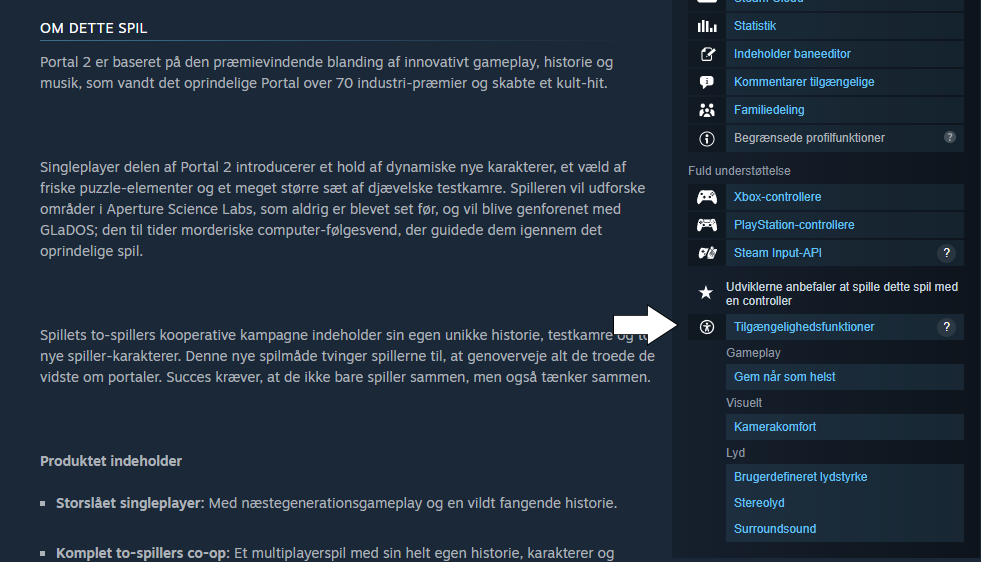 Accessibility features for a specific game are now visible on the right hand side of the store page