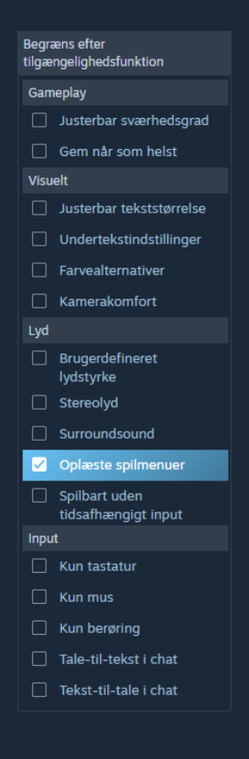 Steam now surfaces information on games with accessibility features as we aim to make it easier for players to find games with the support they need. This update comes after gathering valuable feedback from developers as well as players with disabilities, and over 5,000 applications have added details about their accessibility support (with more developers updating their games each day).