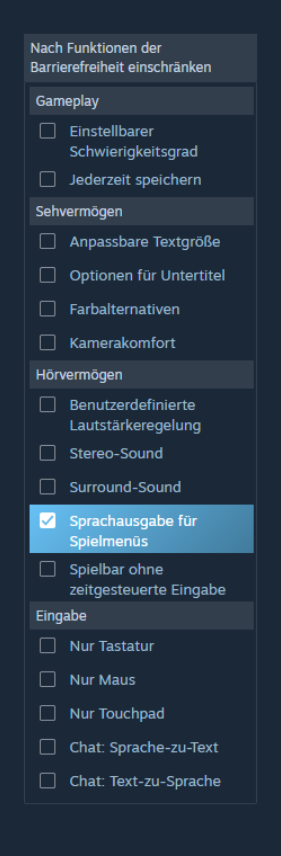 Steam now surfaces information on games with accessibility features as we aim to make it easier for players to find games with the support they need. This update comes after gathering valuable feedback from developers as well as players with disabilities, and over 5,000 applications have added details about their accessibility support (with more developers updating their games each day).