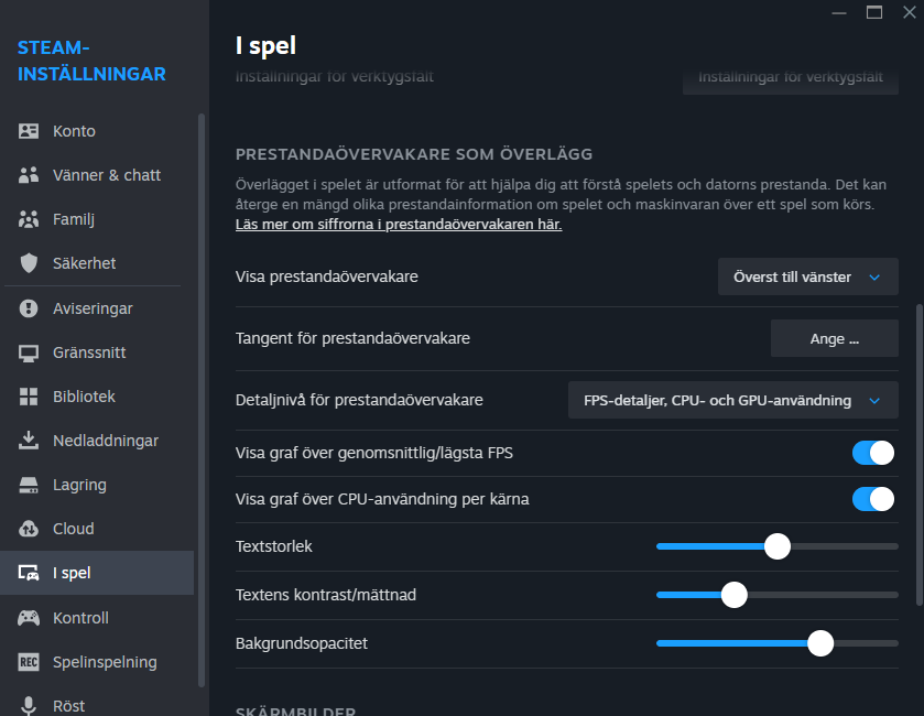 To enable the new performance overlay, adjust it's size and position, set a hot-key, and more, go to Settings->In Game and find the new Performance Overlay section as pictured below.