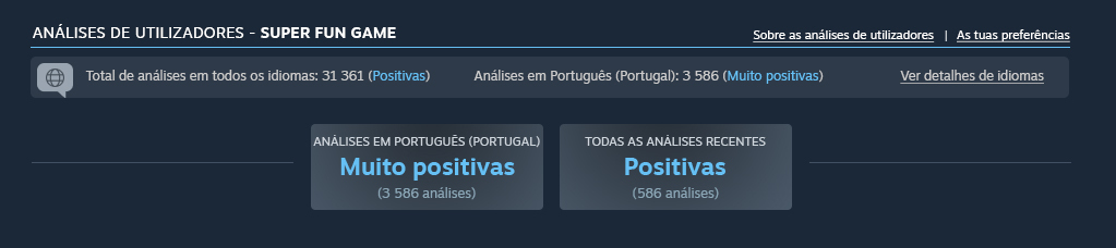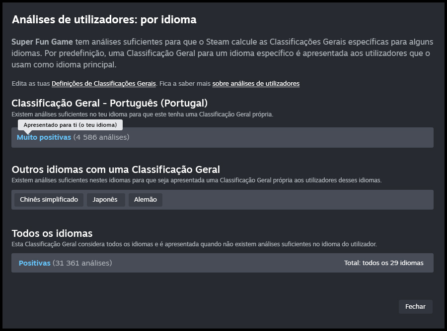 This change impacts games that have more than 2,000 publicly visible reviews, and with at least 200 written reviews in at least one language. We purposely made these thresholds higher than the 10 reviews required to calculate the Overall Review Score; this is because we wanted to be pretty confident in the language-specific score before showing it to users.