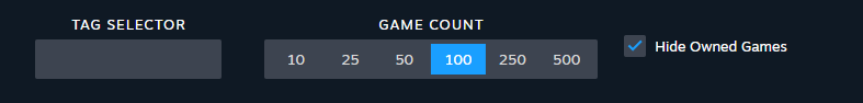 Looking for something particular? Use the tag selector. By default, it lists out tags applied to games you've recently played. But you can also type in any valid store tag to narrow down your results.