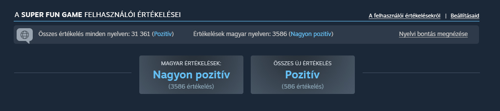 This change impacts games that have more than 2,000 publicly visible reviews, and with at least 200 written reviews in at least one language. We purposely made these thresholds higher than the 10 reviews required to calculate the Overall Review Score; this is because we wanted to be pretty confident in the language-specific score before showing it to users.