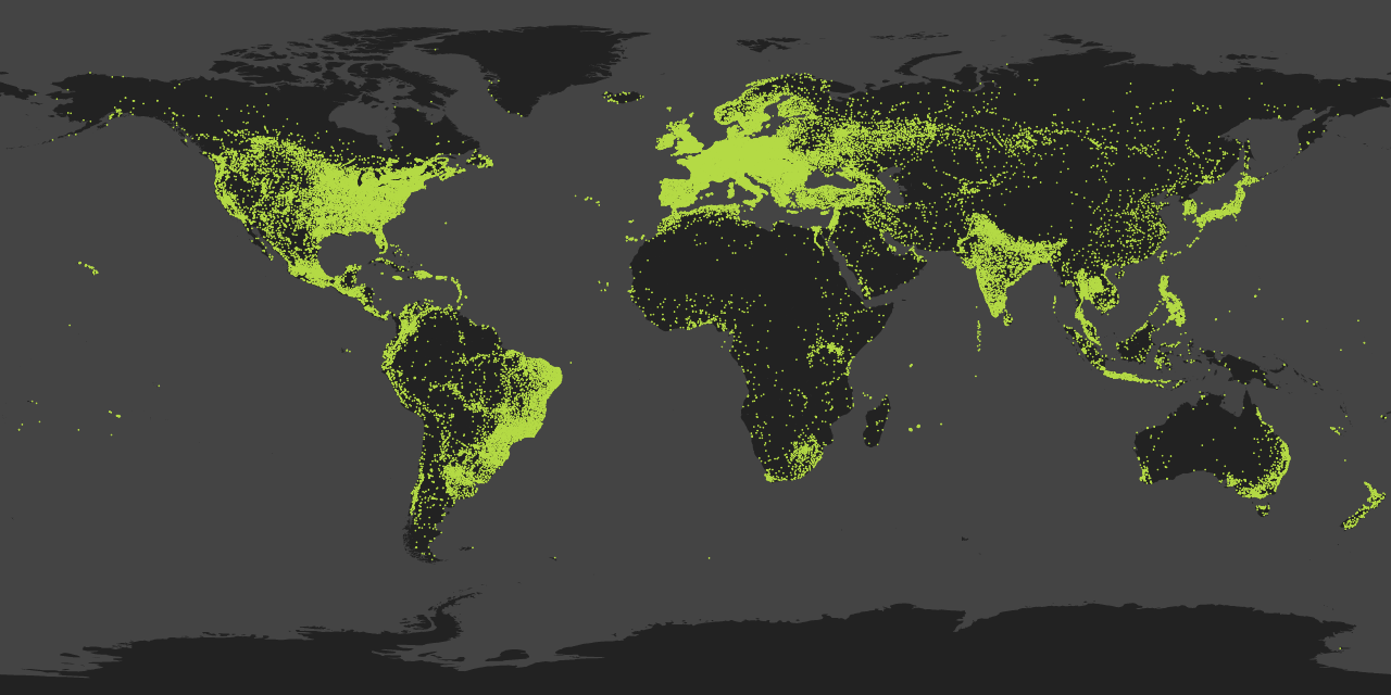 每个点代表的是最近 24 小时内,来自至少一名 Steam 用户的 Steam 下载活动情况。