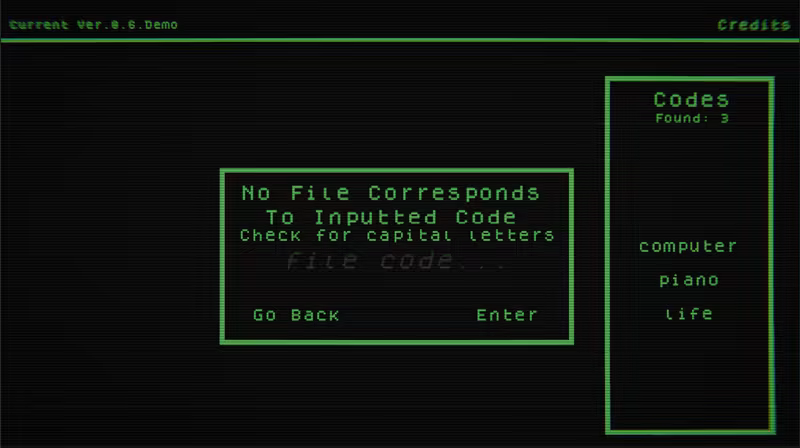 The program also features a database with many secret files, each locked behind a code. Inside there's everything from messages to audio recordings and even video files. This codes could be anything, and each code is linked to the content of the file. The truth must be there somewhere so you'll have to try to figure out those codes. This files are old, left by someone who used to work on this program, someone linked to this whole thing, someone who knew the truth