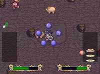 フィールド上の食材たちを攻撃し、炒める、蒸すなどの仕上げ技を駆使して料理を作ろう!