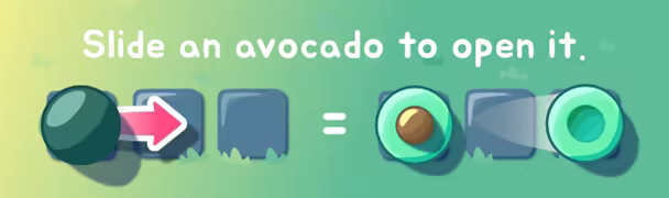 Use the 4 avocado pieces and their unique sliding mechanics to plant all of the seeds into the soil and water tiles. Order of operations is key, and using the pieces in clever ways is often the only way to solve the puzzle. Some seemingly easy levels will have you completely stumped until you get a very satisfying 'Aha!' moment where you see the solution.