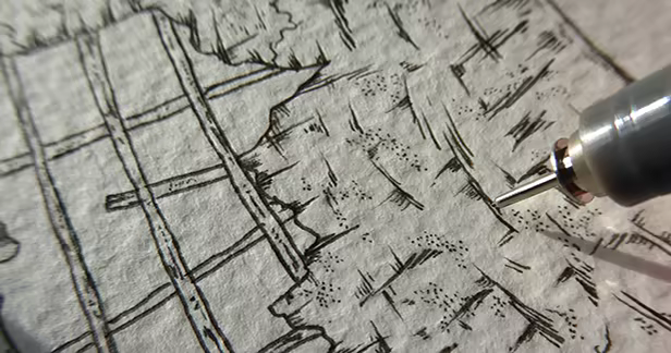 From the grass beneath your feet, to the butterflies dancing in the air, to the floating islands drifting overhead - every little detail has been lovingly-crafted with pen & ink on paper.
